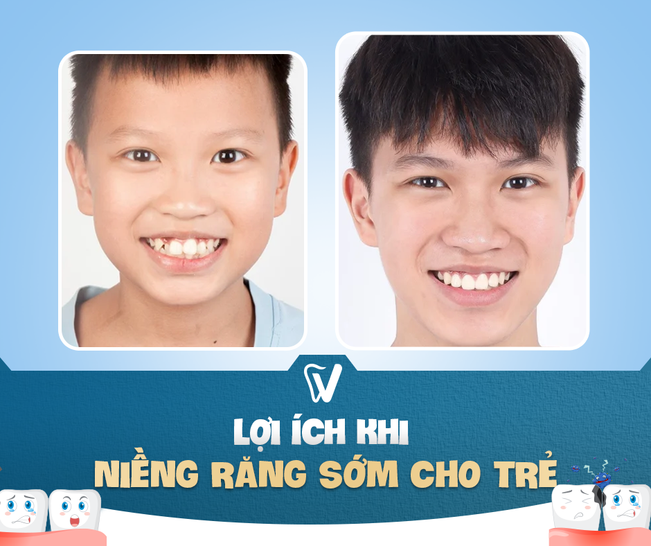 Niềng răng sớm giúp định hình khớp cắn chuẩn xác, giảm thời gian điều trị và tạo ra sự cân đối cho khuôn mặt.